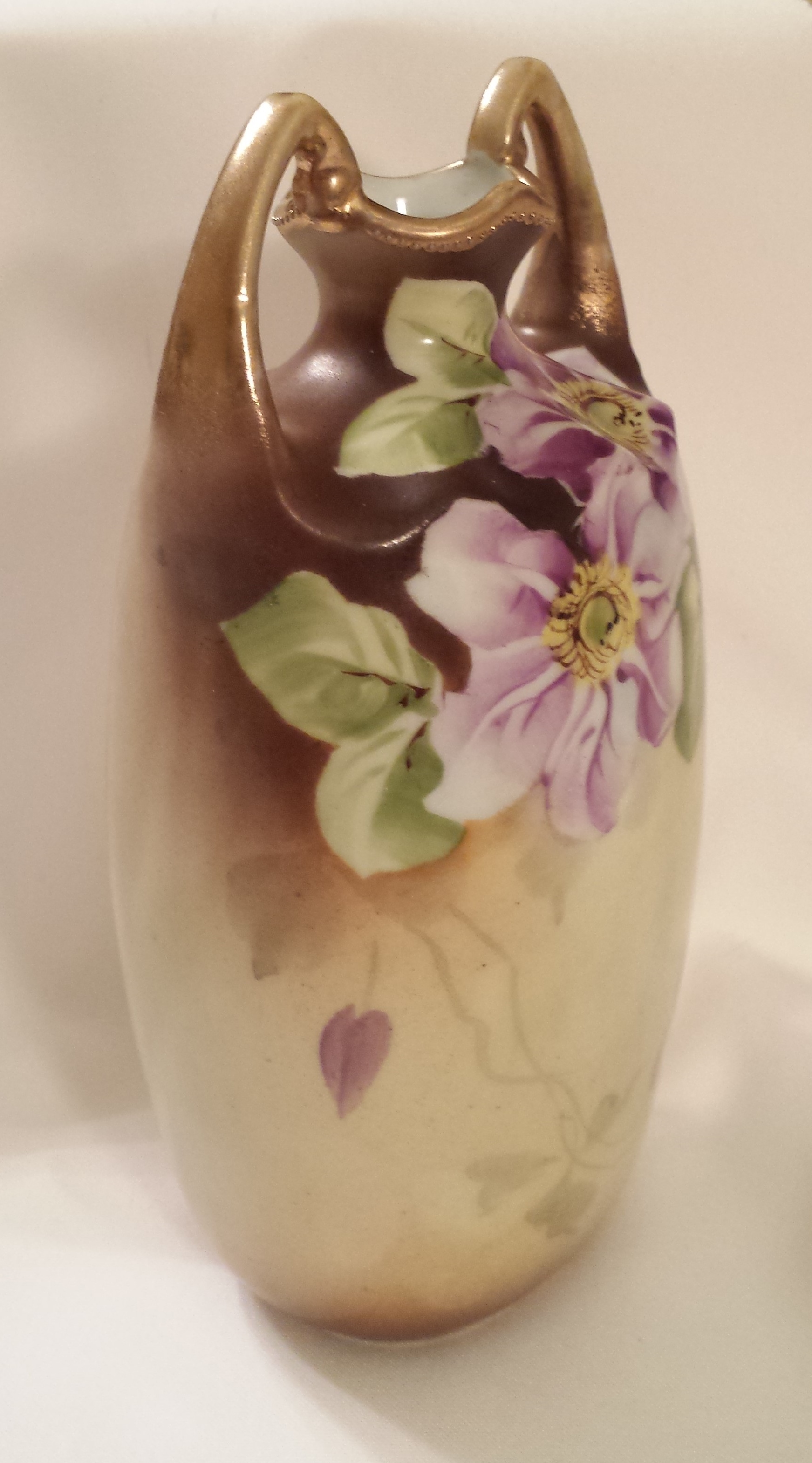 No one will be surprised to learn that no clematis bloomed in my garden in December. None, nada, nichts. In fact, only a very few had any green leaves. Undaunted, I routed around on Ebay to find my December Clematis of the month — the beautiful lavender clematis on the lovely little Nippon vase on the left!